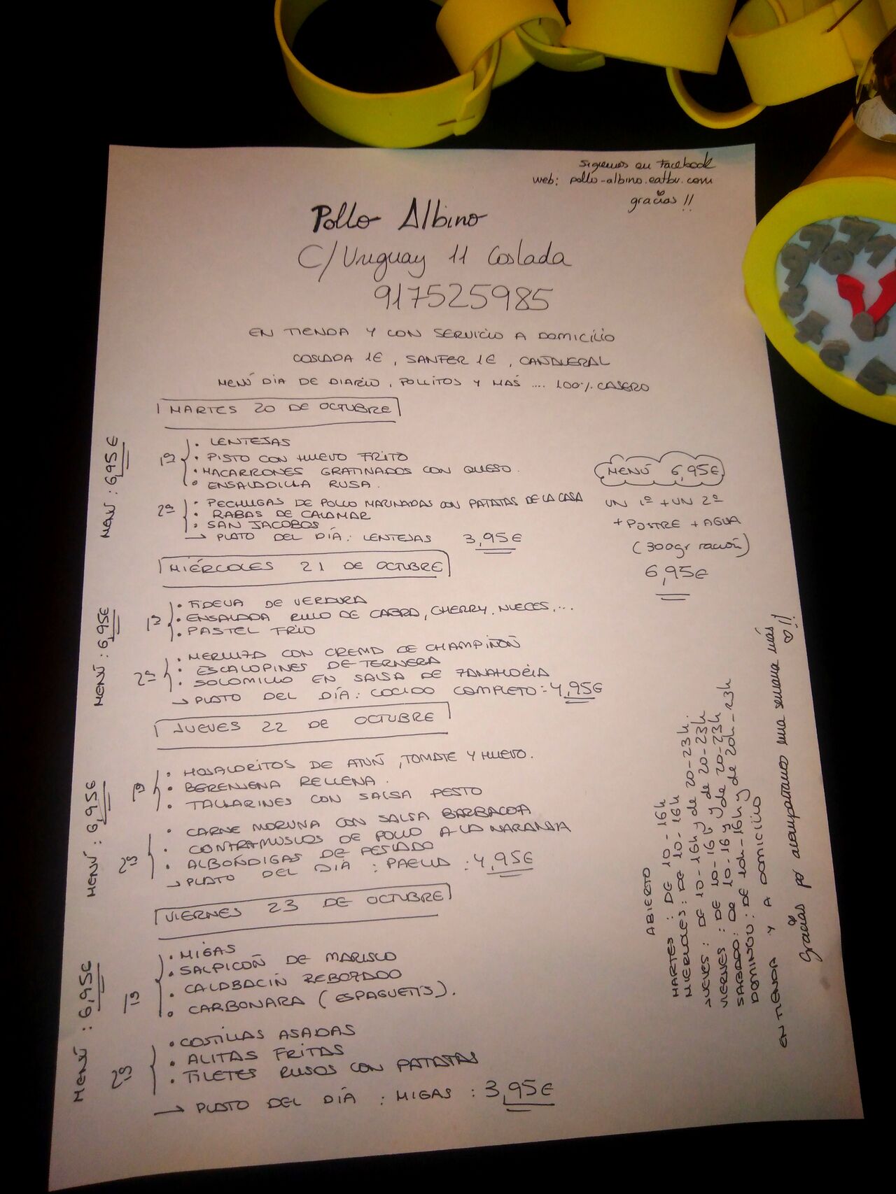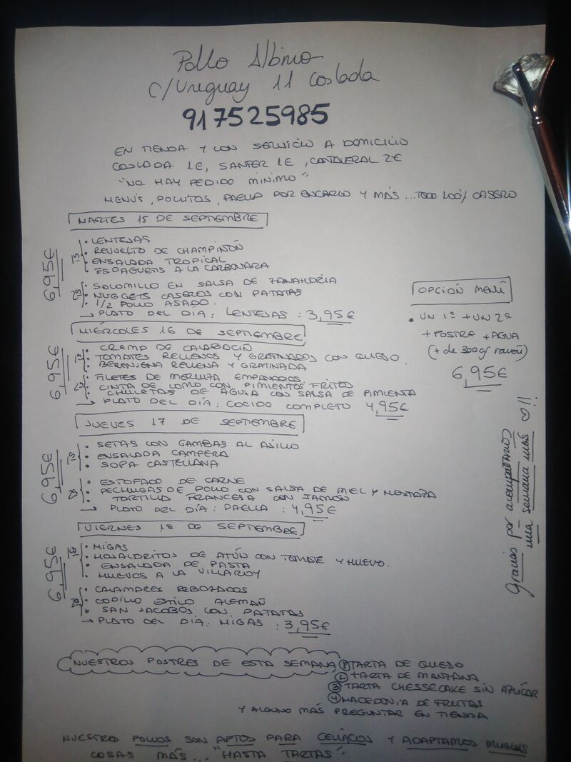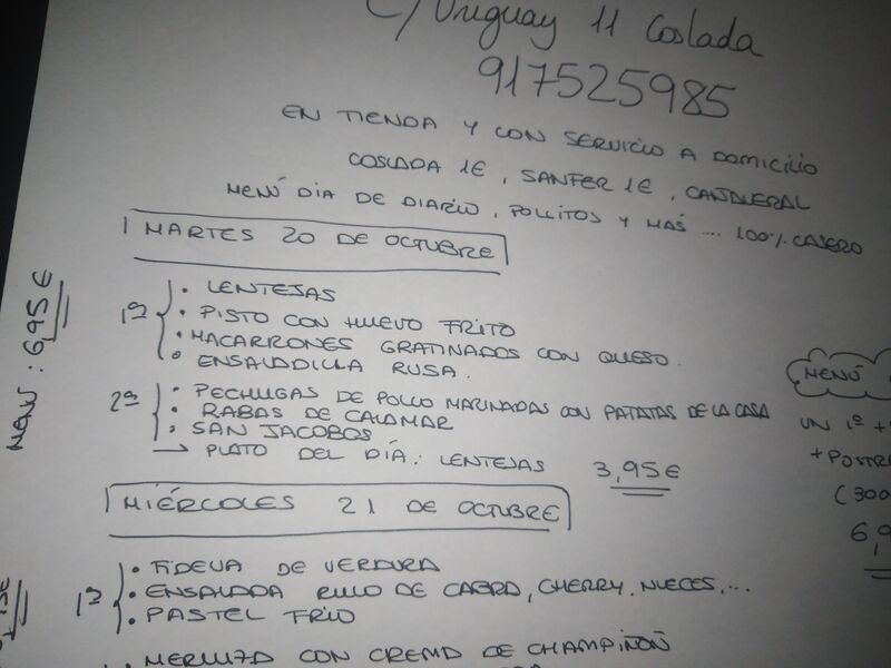 Menú martes ?☎️?917525985 En tienda y con servicio a domicilio