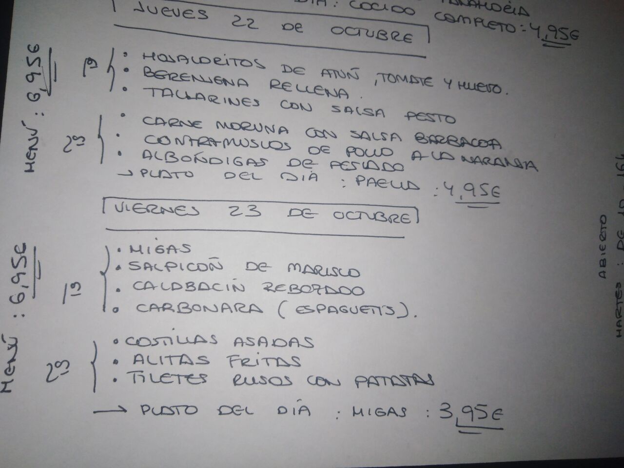 Migas como plato del día, viernes?